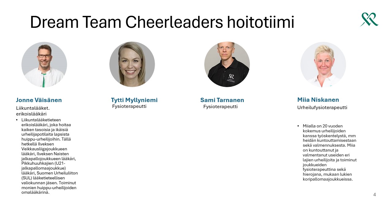 DREAM TEAM CHEERLEADERSIN OMA HOITOTIIMI URHEILIJAN TUKENA